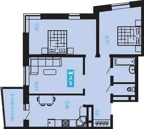 3-х комнатная квартира, 76.30м2